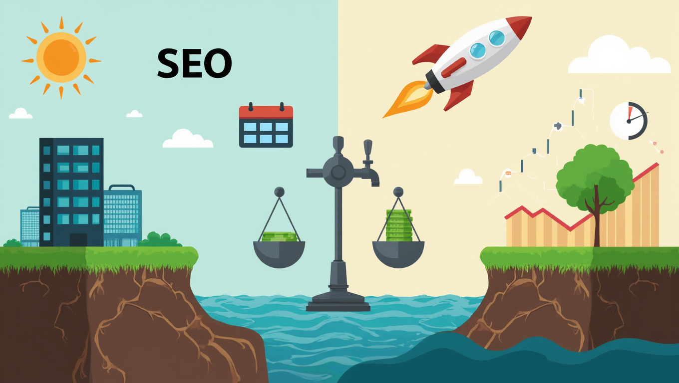 SEO — это долгосрочная стратегия и активы. Снижает стоимость заявки, создает независимость от рекламных бюджетов, работает годами.
